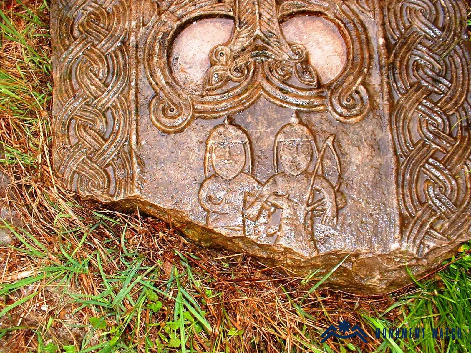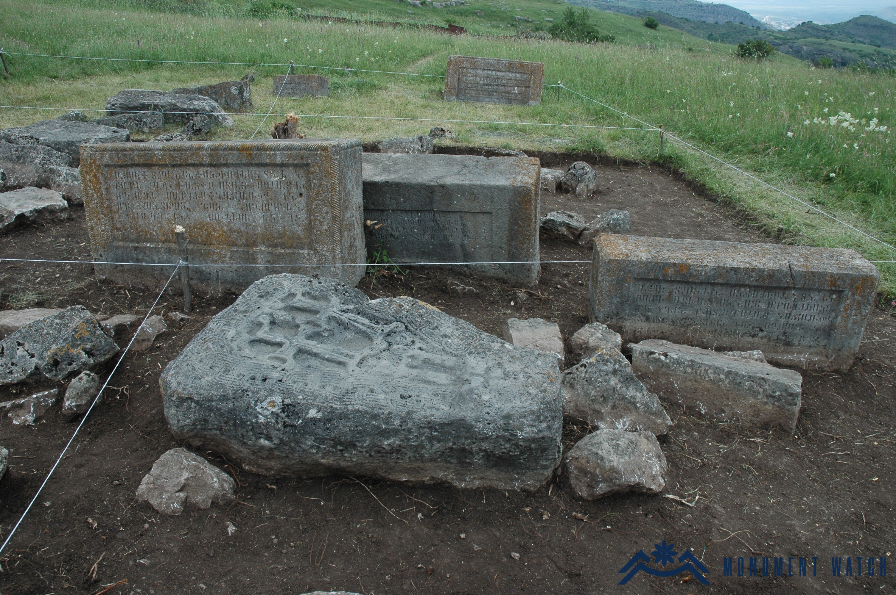 Excavations along the Mkhitarashen section of Shushi's enceinte demonstrate that the intramural zone was inhabited from at least the early first millennium BCE. The remains of an ancient stronghold were exposed at this location, plausibly identifiable with the celebrated Shoshi Kar ("Shoshi Stone") or Skhnakh—a toponym that, according to some scholars, may underlie the name Shushi itself (Fig. 8). Regrettably, work at the site was discontinued for want of funds. Shushi's corpus of khachkars (Armenian cross-stones) presents a striking cultural assemblage, particularly notable for its uncommon reliefs depicting warriors (Figs. 9–10).