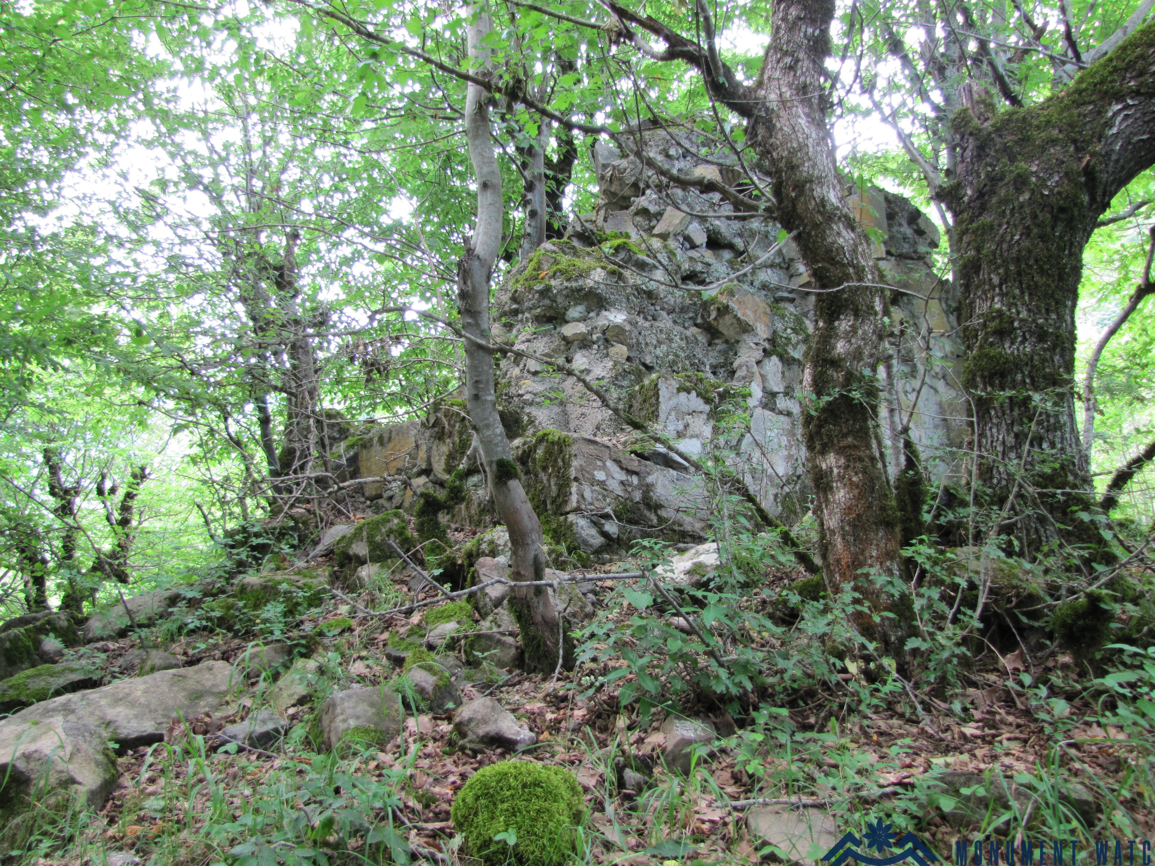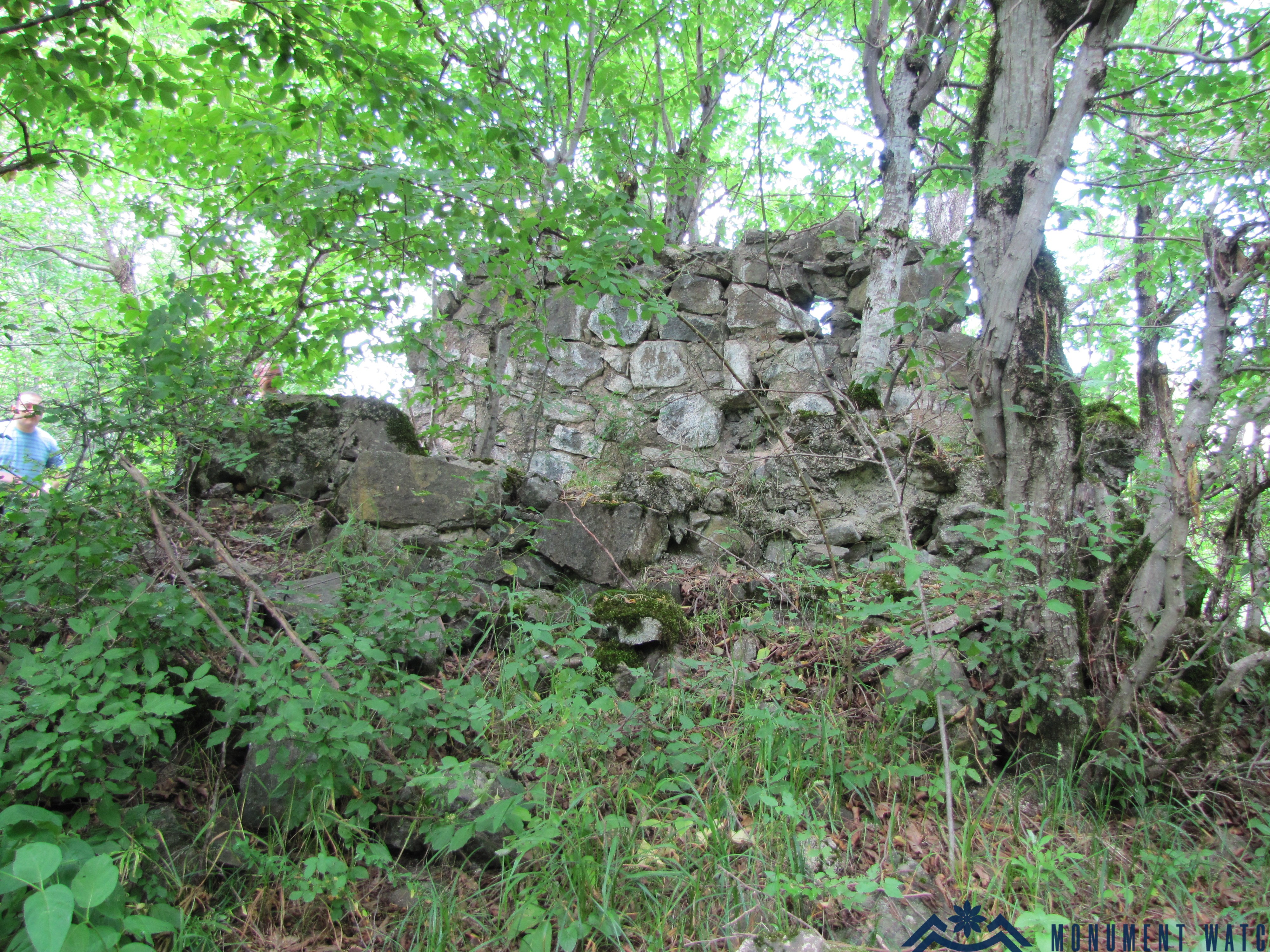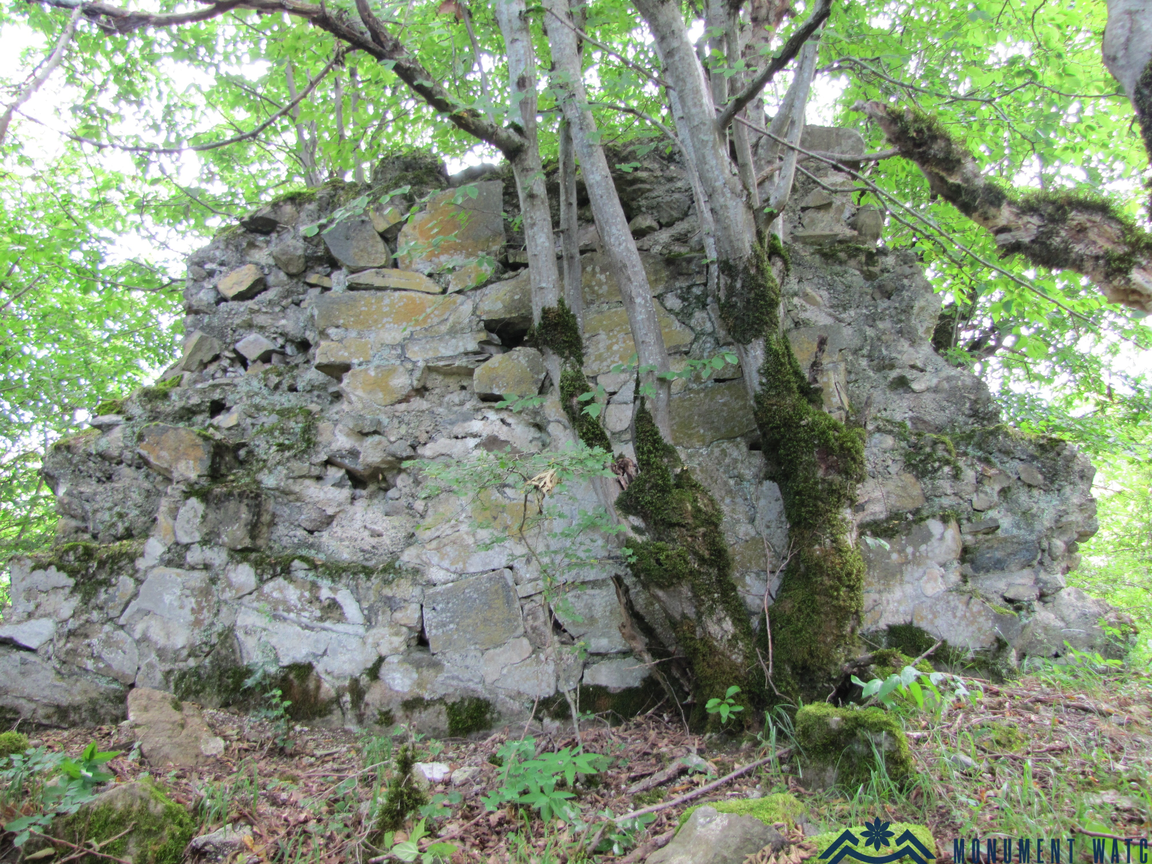of the church and its standing walls are covered with dense vegetation and trees, which pose a threat to the monument.