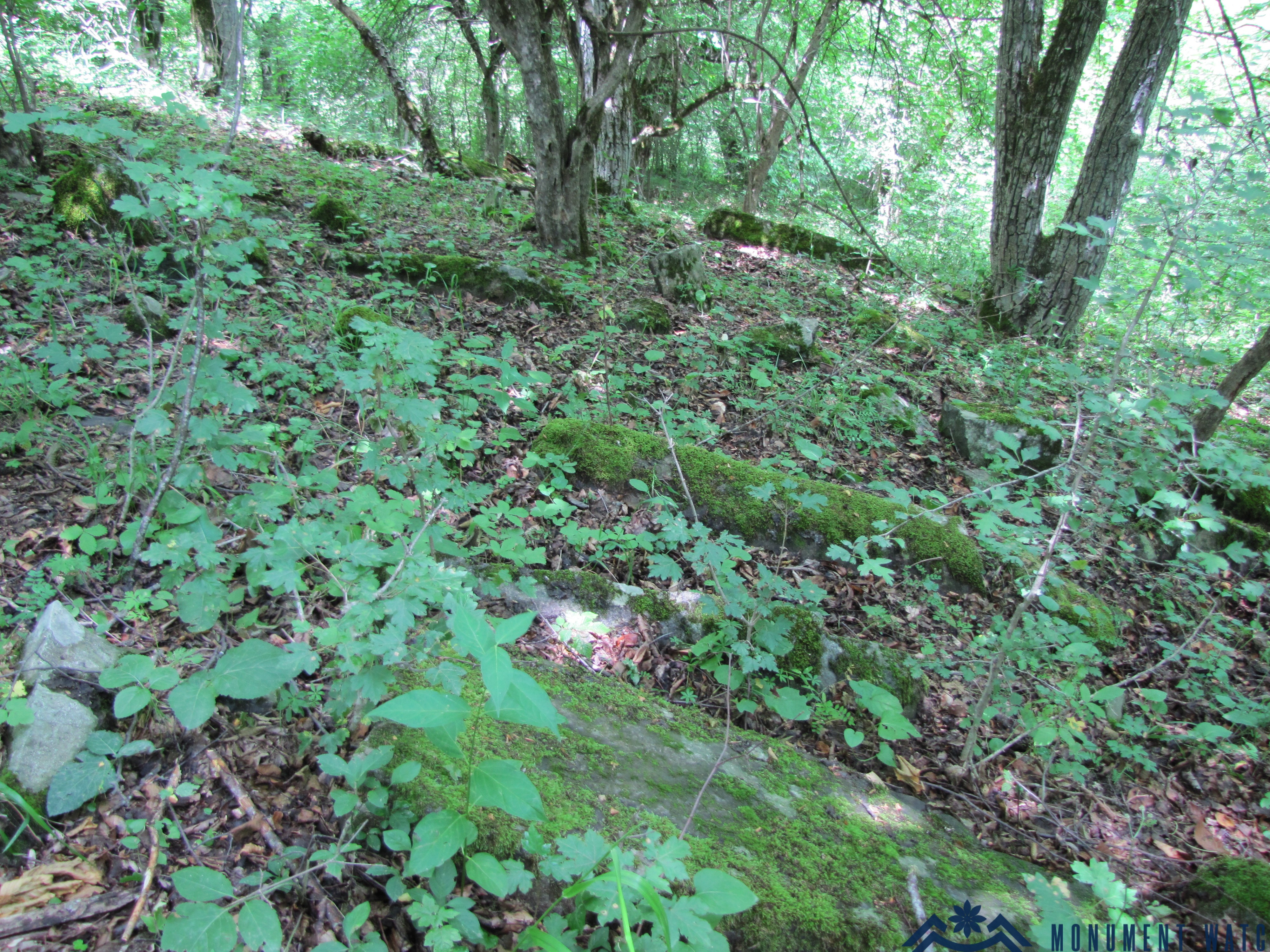 The northern wall of the church survives. The church was constructed frombuilt of small and medium-sized unworked and semi-worked stones, bonded with lime mortar (Figs. 2-5). Near the church extends a large cemetery (Fig. 6), occupying an area of 0.5 hectares. A considerable number of the grave markers are semi-worked and roughly hewn tombstones, although khachkars are also present (Figs. 7, 8).