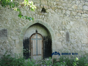 The single entrance of the church is particularly noteworthy: on one of the stones on the left side of the portal frame, a horse is carved, while on the lower stone, there is a vegetal-geometric ornament. On the main façade, on both sides of the entrance, small khachkars are embedded (Fig. 4).