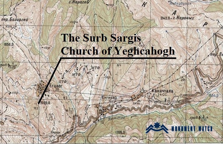 During the military operations of 2020 and 2023, the Church of Surb Sargis sustained no damage. However, extensive earth-moving works currently underway near Yeghcahogh pose a threat both to the village and to the church itself. Since 2020, Azerbaijani authorities have periodically declared that newly constructed churches in Artsakh represent symbols of occupation and should be demolished. In light of these pronouncements—and following the outright destruction of several other churches (Surb Hambardzum in Berdzor, Zoravor in Mehakavan, Surb Sargis in Mokhrenes, and the Green Hour Church in Shushi)—the newly built Surb Sargis Church in Yeghcahogh faces a genuine risk.