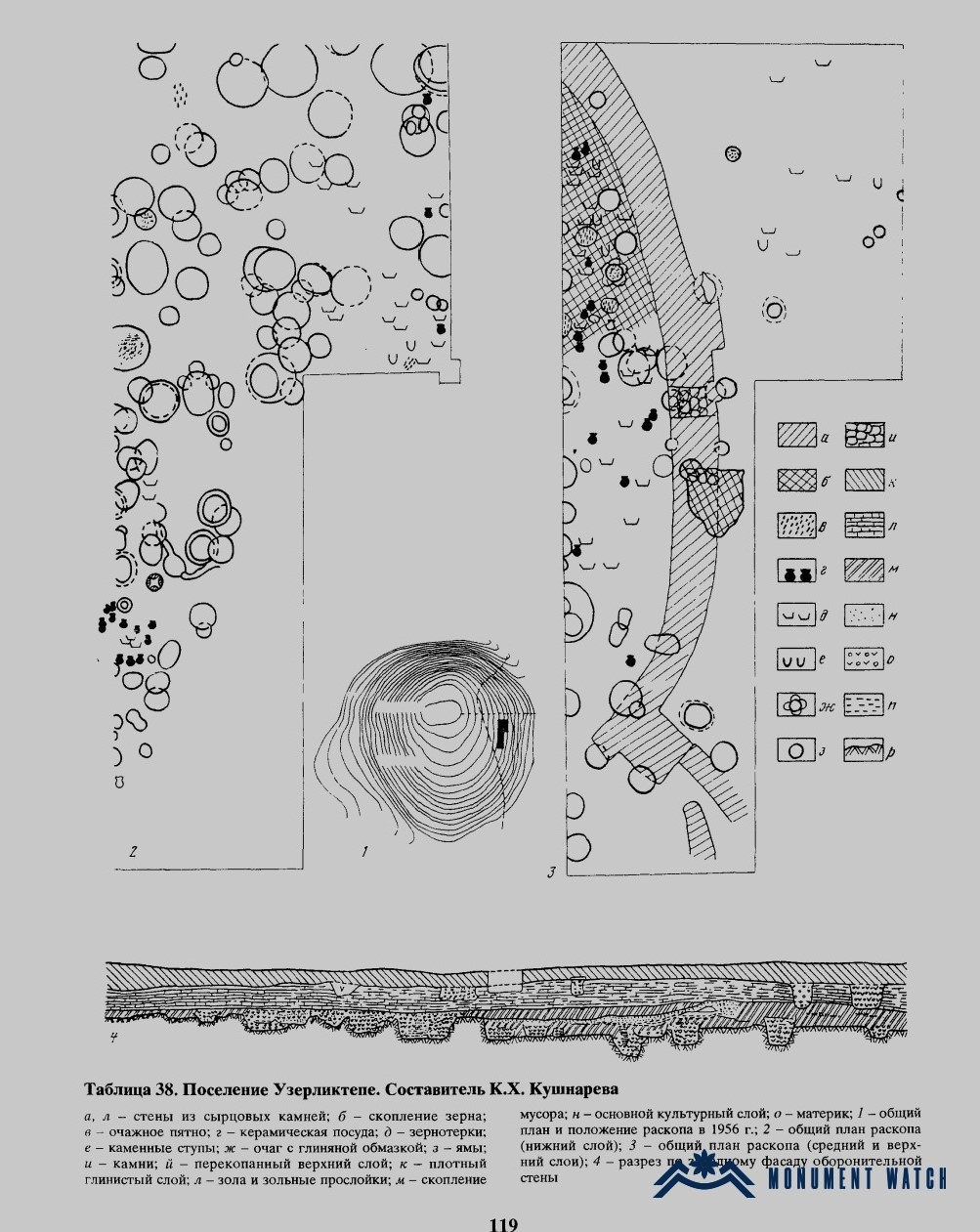 - Kushnareva 1959 - Kushnareva, K. A Bronze Age settlement on the Uz(er)lik-Tepe Hill near Aghdam. In: Proceedings of the Azerbaijan (Oren-Kala) Archaeological Expedition, vol. I (1953–1955). Materials and Investigations in Archaeology of the USSR (MIA USSR), no. 67. Moscow–Leningrad, pp. 388–430.