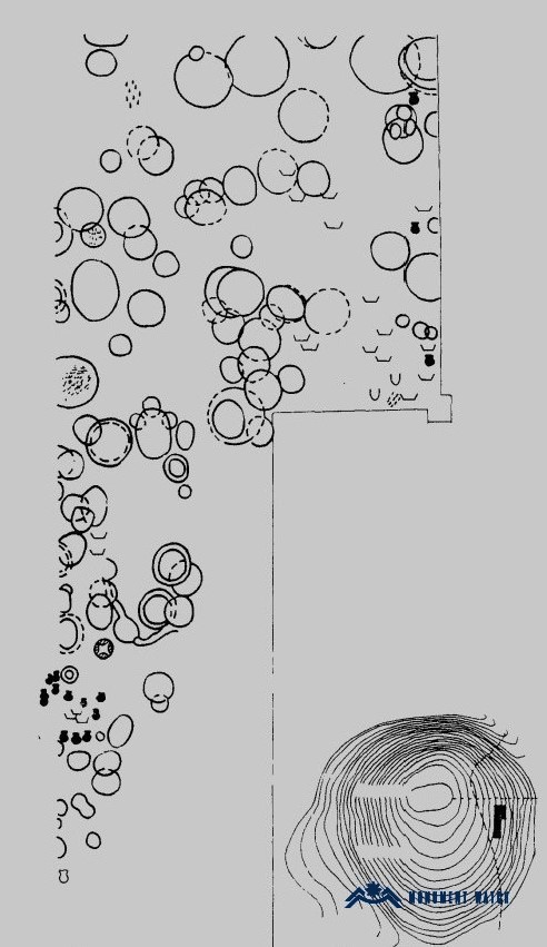 The Uzerlik-Tepe hill settlement has an irregular circular shape, with diameters of 202 and 196 meters. Its average height is 9.8 meters, and it is formed atop a natural hill approximately 3-3.5 meters high (Fig. 1).