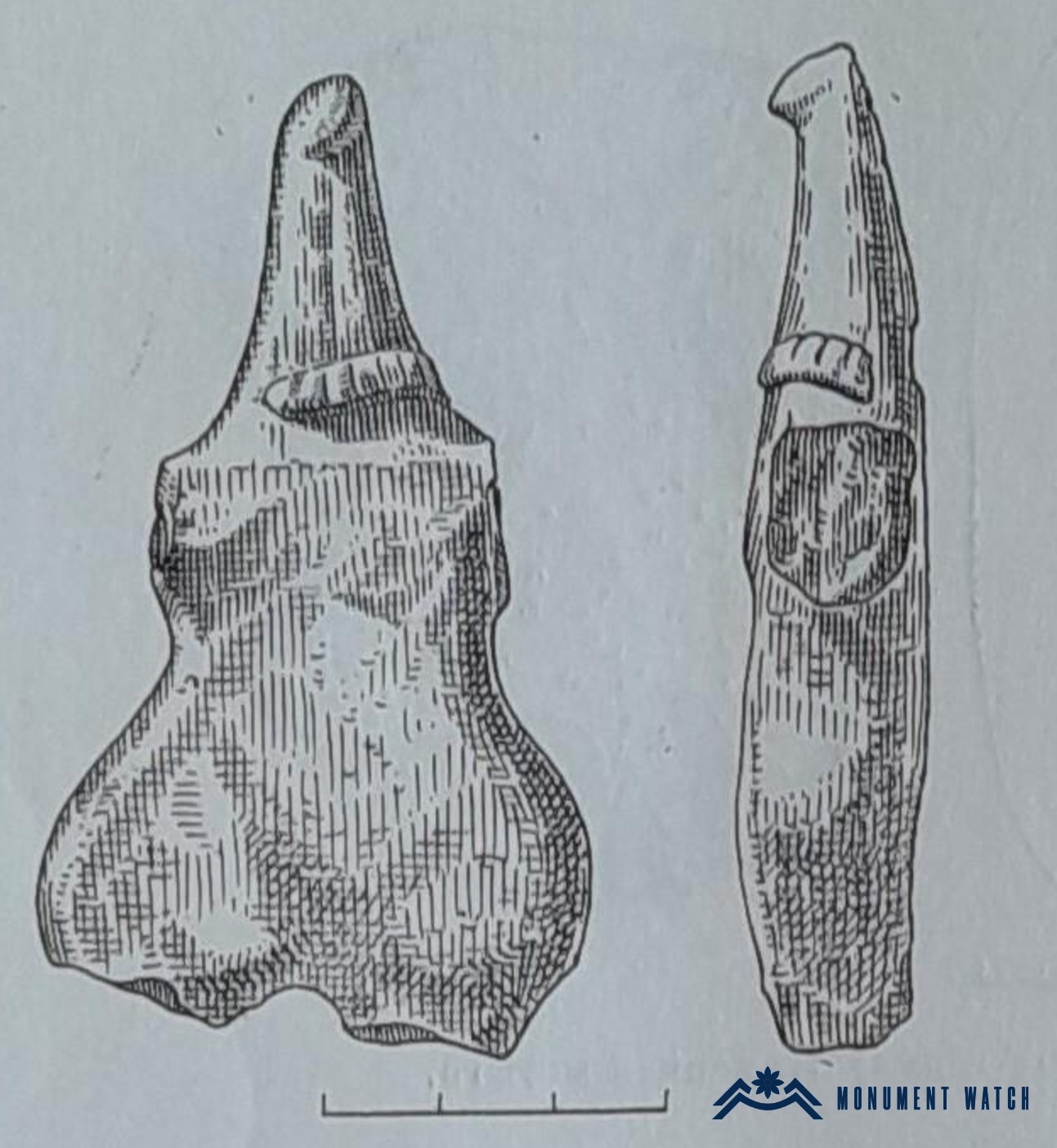 As a result of the destruction of dwellings and the accumulation of cultural deposits, the defensive wall lost its function and was leveled. Life shifted to a higher horizon, forming the upper layer that characterizes the settlement’s final stage. Despite its poor preservation, remnants of clay floors were uncovered here, with household items found on their surfaces. In the heart of one dwelling, charred grain was discovered, as well as a female figurine (Fig. 9).