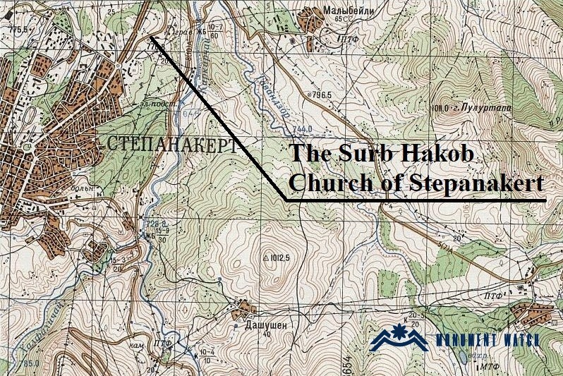 Սուրբ Հակոբ եկեղեցին գտնվում է Ստեփանակերտ քաղաքի կենտրոնից ոչ հեռու՝ Հեքիմյան փողոցում՝ բնակելի տների հարևանությամբ (նկ. 1, 2):