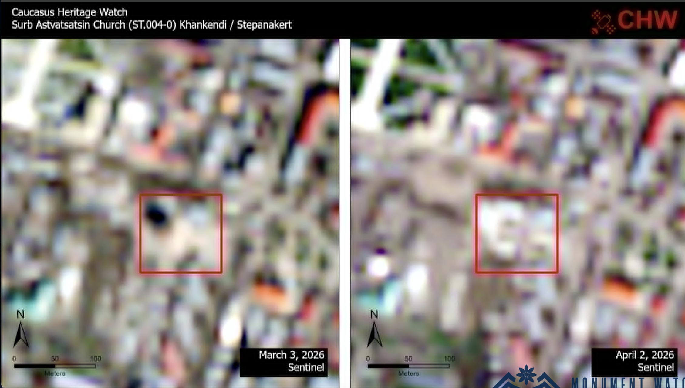 Համաձայն ադրբեջանական համացանցային տիրույթում ներբեռնված տեսանյութերի՝ 2026 թվականի ապրիլի 21-ի դրությամբ Ադրբեջանն ամբողջությամբ ոչնչացրել է Սուրբ Աստվածամոր Հովանու Մայր տաճարը (https://www.aravot.am/2026/04/21/1551378/), ինչը հաստատվել է արբանյակային լուսանկարներով (նկ․ 10)։