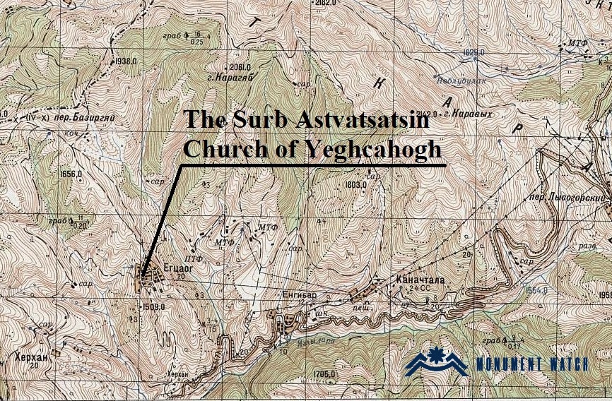 Церковь расположена в центре села Егцаох Шушинского района Республики Арцах (рис. 1).